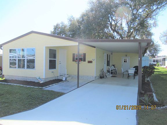 This home is on LEASED LAND with a monthly lot rent of $568.00 in the gated Forest Lake Estates community (55+ and pet-friendly). Rent includes trash and lawn service. This is a very clean, well-maintained 2 bed/2 bath home with a bright Florida room all with central air. The floors in the home are wood laminate and the bathrooms have vinyl tile. Home comes fully furnished. It is ready for immediate occupancy. The lot rent includes trash pickup and lawn service. Start living the good life in the beautiful Sunshine State. DINING AREA (7' x 8'6") The flooring is attractive wood laminate. The table and six chairs remain. KITCHEN (8' x 10'6") This kitchen has plenty of cabinets, all refinished and a center island with additional counter space and cabinets for storage. The appliances include an GE smooth-top stove, GE top-freezer type refrigerator. The room has beautiful wood laminate and a lighted ceiling fan. LIVING ROOM (11' x 14') This is a comfortable-sized room with a lighted ceiling fan and wood laminate flooring that matches the dining area. Furnishings include a sleeper sofa, recliner, end table, lamp, curio cabinet, end table cabinet, large TV stand cabinet and a 55" Philips flat-screen smart TV (2 years old). MASTER BEDROOM (11' x 12') Has wood laminate flooring, a ceiling fan and a walk-in closet. It comes with a queen-size bed, two night stands, a matching bureau and two table lamps. MASTER BATH Has a newer single-sink vanity. There is a walk-in shower with built-in bench seat and grab bar and a medicine cabinet. Vinyl tile covers the floor. GUEST BEDROOM (9' x 9') This room has the same type of wood laminate flooring as the master bedroom. There is a large wall closet. Furnishings include a full-size bed, a night stand and lamp. GUEST BATH Has a single-sink vanity with a medicine cabinet and a tub/shower unit. This bathroom also has vinyl tile flooring. LAUNDRY The Whirlpool washer and Amana dryer are located in the shed. There are shelves above for your laundry supplies. FLORIDA ROOM (10'4" x 14'8") This is a great room at the front of the home to relax and entertain in. Lots of double-pane glass windows allow in plenty of light. Berber carpet and a lighted ceiling fan. This room has central air and heat for year-round use. The sleeper sofa, two glider chairs, two end tables, two lamps and the bureau come with the purchase. EXTERIOR Aluminum siding. AC serviced every year. Roof replaced approximately 8 years ago, hot water heater 4 years ago. Large shed has plenty of shelves and space. Mini-fridge and some tools stay. Painted driveway fits two cars, 1 under carport. A glass-top table, four chairs and a propane grill remain. There is a four-seat, six-battery Club Car golf cart that is negotiable. Forest Lake Estates is a premier 55+ manufactured home community in Zephyrhills. The clubhouse and ballroom are huge. There are two heated swimming pools, miniature golf, pickleball/tennis courts and a covered shuffleboard facility. The residents are very active and pets are welcome. The lot rent for this home is $568.00 per month. There is an additional tax of approximately $55.00 per month. Shopping, restaurants, a hospital and medical offices are all close by. All listing information is deemed reliable but not guaranteed and should be independently verified through personal inspection by appropriate professionals. American Mobile Home Sales of Tampa Bay, Inc. cannot guarantee or warrant the accuracy of this information, measurements or condition of this property. Measurements are approximate. The buyer assumes full responsibility for obtaining all current rates of lot rent, fees, and pass-on costs. Additionally, the buyer is responsible for obtaining all rules, regulations, pet policies, etc., associated with the community, park, or home from the community/park manager. American Mobile Home Sales of Tampa Bay, Inc. is not responsible for quoting of said fees or policies.