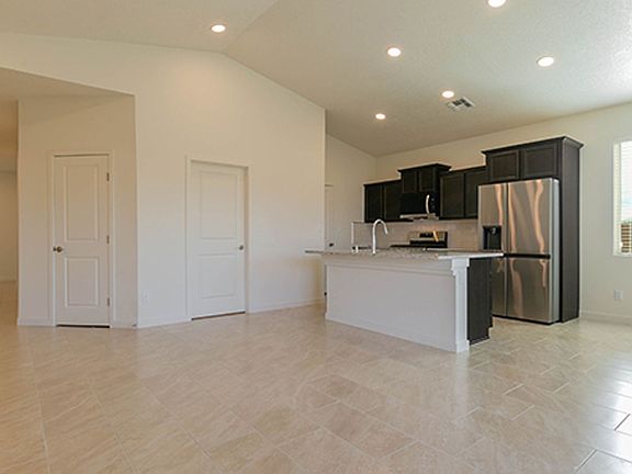 This spacious one story with 3 bedrooms, 2 baths, and 2 car garage is located in the newly developed community of Geo Park which is conveniently located close to restaurants, grocery stores and services. The shopping mall is a three minute drive. The community is close to Cerrillos Rd and a few minute drive to 599 for an easy commute to Los Alamos. Amenities on this new home include granite countertops in the kitchen and baths with a 4 backsplash, ceramic tile surrounds in owner's suite bathroom, 95% efficiency tankless water heater, energy efficient appliances and a programmable thermostat. The home is Silver level green efficiency. Guest bath has steel tub. Owner's bath has separate tub and shower. 9 ceilings throughout. Covered patio off living room. Living room has vaulted ceiling. Separate laundry room. Come out and take a look at all this home has to offer.