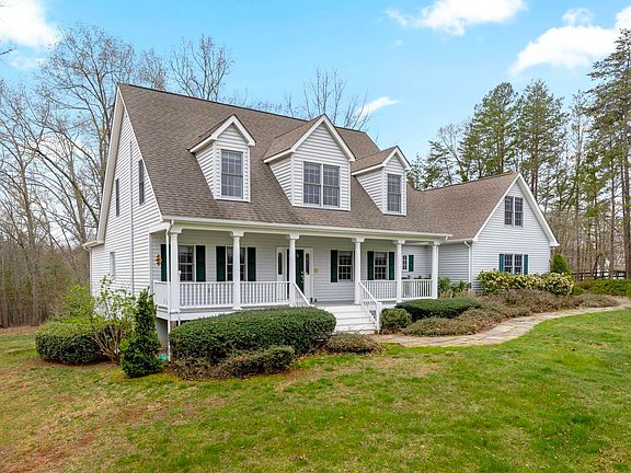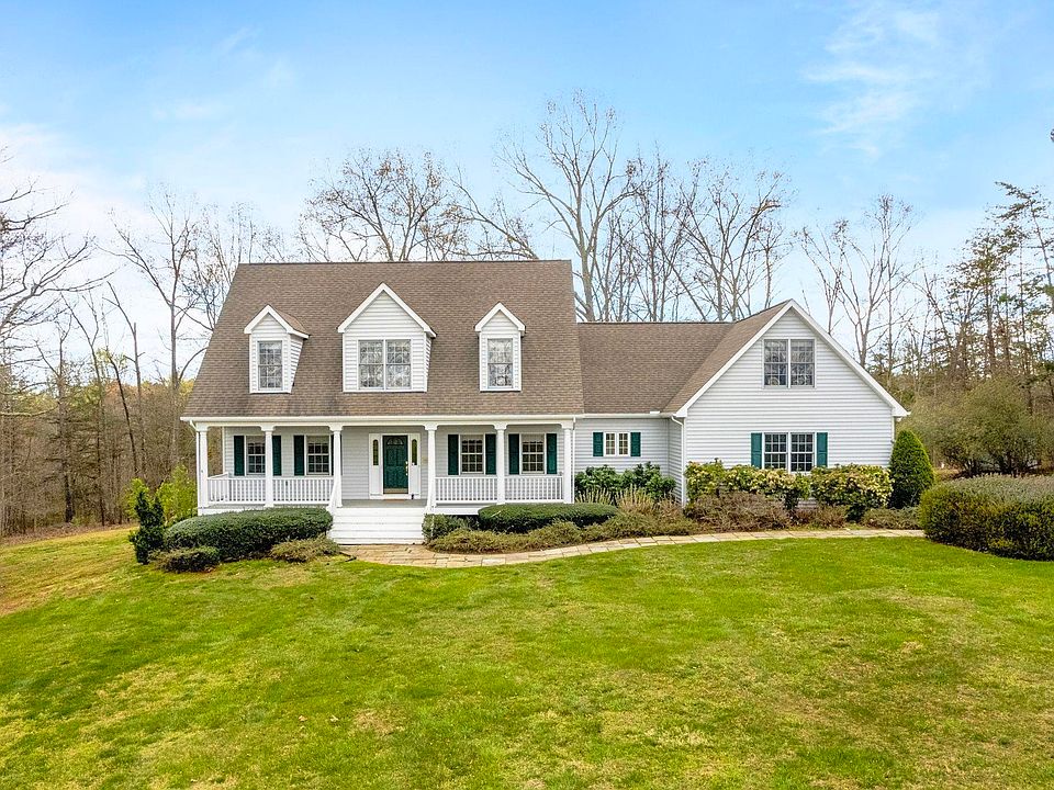 Located 10 min from Hollymead Town Center and 20 from Albemarle High School, lies this Charming Cape Cod on 5+ acres in Earlysville. With gorgeous mountain views off the covered front porch, this single owner home is a thoughtfully constructed beauty. Enter the home to gleaming cherry hardwood floors and both a formal living room/study and dining room located just off the foyer. Traverse into the family room and the space dramatically opens with a vaulted ceiling with skylights, gas fireplace and access to the primary suite, kitchen, or dreamy screened in porch. The renovated eat in kitchen boasts cherry cabinetry with undermount lighting, granite counters, kitchen island, and stainless appliances. With the oversized primary suite also on the main floor, there is the ability to live full time on the main level if desired. Need space for family and guests though? Upstairs the options are endless with 3 additional bedrooms, 2 full bathrooms and a huge bonus room over the garage. If that is not enough, the 1500 sqft finished walkout basement offers another potential bedroom/full bath combo along with an enormous rec room with dry bar. With abundant yard space and the backdrop of the mountains, this is perfect place to call home!