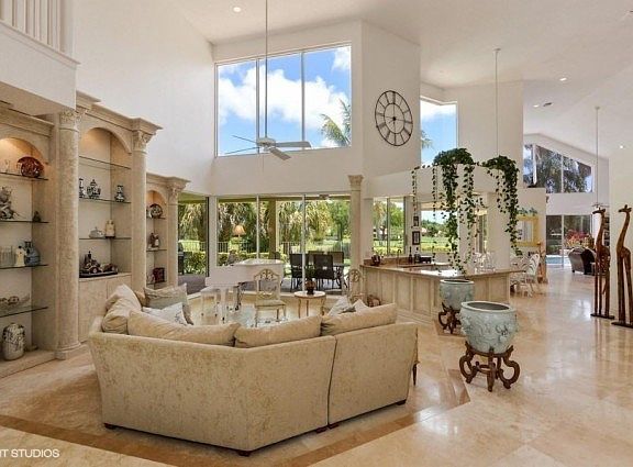 Prime Golf course lot with panoramic views, nearly half acre (ask about plans for addition) - Gorgeous Renovated kitchen next to family room - open style perfect for serious Cook or Entertainer - Marble floors, on diagonal in living areas - Private upstairs Master suite with separate closets, spacious Master bath and French doors leading to balcony overlooking golf course - Four Guest bedrooms downstairs, three with ensuite baths - Incredible Pool & Patio area - private, golf views, tropical landscape, room for more special outdoor spaces on this huge lot - Roof 2006 - Circular driveway and side entry 3 car garage which gives it great curb appeal - within a small cul-de-sac. All A-rated schools. Broken Sound CC is an award winning club with expert management and fabulous facilities