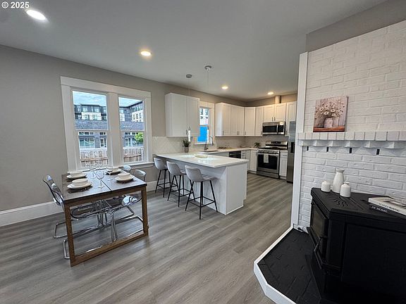 Welcome to this beautifully updated 3-bedroom, 2-bathroom home and a dedicated office—where historic charm and thoughtful modern upgrades meet. A brand-new roof, new HVAC, windows, and durable flooring throughout ensure peace of mind and style. The heart of the home is the fully renovated kitchen, boasting sleek new cabinets, elegant quartz countertops, and a gas stove perfect for home chefs, with included stainless-steel appliances, washer, dryer, and refrigerator for seamless move-in. Both bathrooms shine with new tile, vanities, tub, shower, and contemporary fixtures. High ceilings on the first floor amplify natural light and create an inviting, airy ambiance. The dedicated office offers the perfect flex space for remote work, creative pursuits, or guest overflow. Outside, fresh landscaping and a welcoming front porch set the tone. Nestled in the evolving Lents neighborhood, you’re just steps from Lents Park, local shops, and public transit—delivering community charm and everyday convenience. Bonus: A brand-new washer, dryer, and refrigerator are included to make settling in a breeze. Don’t miss the opportunity to own this turnkey, thoughtfully updated home—schedule your private tour today!