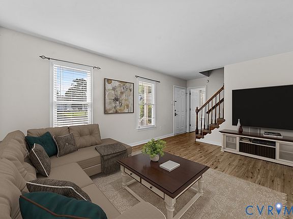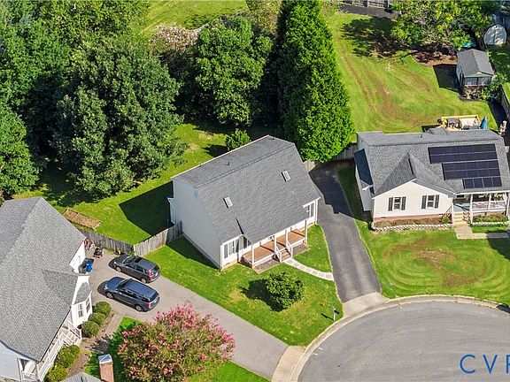Welcome to 6010 Saber Court in the Battlefield Green subdivision of Mechanicsville - this vinyl-sided cape style 2-story home is move-in ready and is located on a quiet cul-de-sac street. Upon entering, you are greeted with luxury vinyl floors in the living room & 2 first-floor bedrooms. The eat-in kitchen has a large bay window and walk-out access to the private rear deck & fully fenced backyard. The first floor of the home is completed with a laundry room (washer/dryer convey) and a full hallway bathroom. Both downstairs bedrooms are flexible and could easily be a home office, nursery or playroom if needed. 2 additional carpeted bedrooms are upstairs with skylights in both and large closet spaces for storage. A second full bathroom w/ tub & shower completes the interior of the home. The landscaped exterior of the property is highlighted with a full front porch (ready for porch swing), large rear deck & paved driveway. The over-sized & fully fenced backyard is ready for pets/kids to play safely and has raised beds for gardening. The Battlefield Green HOA has ample amenities, including an outdoor community pool, sports fields, playgrounds & tennis courts. Just minutes to restaurants & shopping nearby with some of Hanover County's top-rated schools. Easy access to 295, 95 and all major roads. Located just 20 minutes to Richmond International Airport, Short Pump & Downtown Richmond. (Virtual staging used in some photos. )