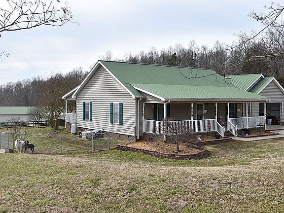 Unique find in the Triad. Horse/Cattle/Goat/Sheep/Chicken farm with covered arena plus covered round pen, run in sheds, workshop, paddocks, pond, woods with trails. Approximately 20 open acres, 30 minutes to Greensboro. 11 12x12 stalls (8 of which have been converted to 6x12), 8 8x6 stalls, 2 12x8 stalls. 48x36 equipment building and much more! 38 acres total with 3 bedroom, 2 bath home perfectly situated between the farm use buildings. The full 40 acres is also available with two ranch style homes.