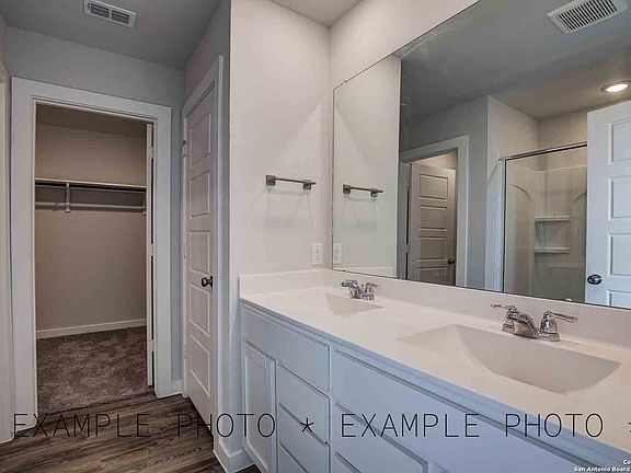 The Rudy at Bear Creek is of well-designed living space. The first level features an open-concept great room seamlessly connected to the dining area and kitchen equipped with a corner walk-in pantry and a center island. Additionally, a convenient powder room can be found on the main level. Upstairs, a spacious primary suite's en-suite bathroom offers privacy and functionality with a dual-sink vanity and an expansive walk-in closet. Three secondary bedrooms, also located on the second floor, share a full bathroom. A full laundry room and 2-bay garage complete the space. Additional home highlights and upgrades: 36" white kitchen cabinets with quartz countertops and backsplash Luxury wood-look vinyl plank flooring in common areas Stainless-steel appliances Soft water loop Additional recessed can lights throughout home Cultured marble countertops and modern rectangular sinks in bathrooms Landscape package with sprinkler system Garage door opener with two remotes Covered patio Exceptional included features, such as our Century Home Connect smart home package and more!