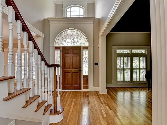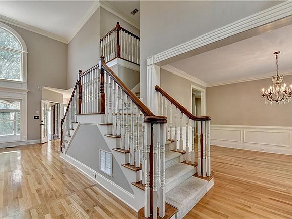 Picture-perfect 6 bed/5 bath CUL-DE-SAC home with GUEST BEDROOM and FULL BATHROOM on the main, professionally FINISHED TERRACE LEVEL and tons of UPDATES! 5 YEAR OLD ROOF, 3 REMODELED BATHROOMS, 3 YEAR OLD WATER HEATERS and FRESHLY PAINTED EXTERIOR. Step through the arched front porch and into the 2 story hardwood foyer. To your right is the family-sized DINING ROOM with picture frame and crown molding, plantation shutters and hardwood floor. To your left is an elegant OFFICE/MUSIC/SITTING ROOM with gorgeous vaulted ceiling, plantation shutters and hardwood floor. The soaring two-story family room features a stacked stone fireplace, custom built-ins and a breathtaking wall of arched windows that frames picturesque views of the wooded backyard. The beautifully appointed kitchen features custom cabinetry, granite countertops, stainless steel appliances, double ovens, gas cooktop, tile backsplash, a large bar counter, hardwood floor and walk-in pantry. The light, bright bayed BREAKFAST ROOM has French doors that lead out onto the stunning SUNROOM featuring an absolutely gorgeous new tongue and groove wood plank ceiling, slate tile floor, expansive wall of windows with high-end molding and views of the tranquil backyard! A second door from the breakfast room opens up to the huge cedar deck, Perfect for entertaining! A sought-after MAIN FLOOR GUEST BEDROOM with full bathroom with custom cabinetry and tile floor and shower. The updated LAUNDRY/MUDROOM features custom cabinetry and a convenient sink. Double staircases lead to the second level. The luxurious MASTER SUITE features a tray ceiling and a beautiful bayed SITTING AREA with vaulted ceiling—ideal for a quiet reading nook or morning coffee retreat. The COMPLETELY UPDATED master bathroom is a spa-like retreat with custom cabinetry, frameless glass shower with modern tilework, stand-alone tub, double vanity and HIS-AND-HERS WALK-IN CLOSETS with custom cabinetry. THREE additional spacious secondary bedrooms include one with a beautifully updated en-suite bath, while the other two bedrooms share a renovated Jack and Jill bathroom with custom cabinetry, double vanity and tile floor and shower. The professionally finished TERRACE LEVEL has space for everyone and features an expansive family room with custom built-ins, a large tiled GAME ROOM/DINING AREA with tray ceiling, a WET BAR with stain-grade cabinetry, dishwasher and granite countertops. An additional flex room/exercise room and large bedroom and full, tiled bathroom complete this spacious area. Step out onto the COVERED PATIO and enjoy the private, wooded backyard and stone WATER FEATURE. Situated in Forsyth County’s most prestigious GATED/GOLF/SWIM/TENNIS/PICKLEBALL community in the sought-after LAMBERT HIGH SCHOOL district! This wonderful community features 24-HOUR SECURITY, a PRIVATE JACK NICKLAUS GOLF COURSE, clubhouse with fitness center, PICKLEBALL, TENNIS courts and tennis teams, swimming POOL with kid’s pool and waterslide, swim team, playground area and so much more! Welcome home...