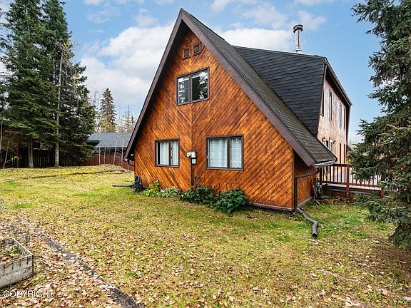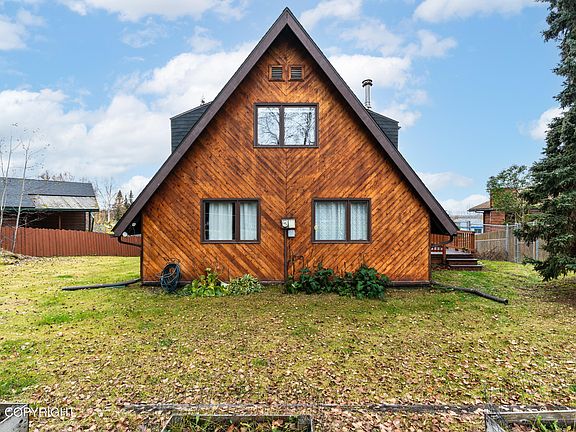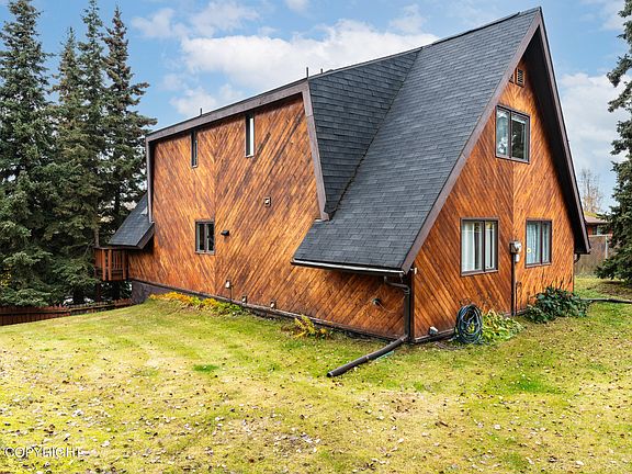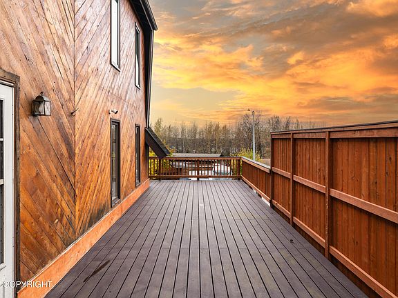 Prime location with stunning views of Sleeping Lady & Chugach Range. Walk to Ptarmigan Elementary, 3-car garage, spacious decks, marble master bath, 2 fireplaces, wood stove, and roomy master suite with office space! New $60k deck installed in 2021. Don't miss this!