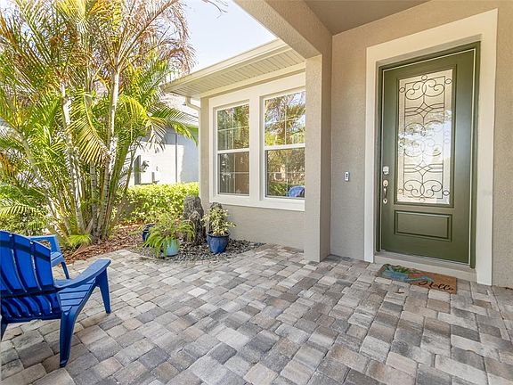 Beautiful model home located in the 55+ community in Fishhawk! This home was lived in seasonally and still looks brand new. The luxurious kitchen offers Quartz countertops with large island and upgraded cabinetry. Desirable floorplan with 2 bedrooms and additional flex space that could be converted. The backyard offers a great space for relaxing or entertainment with the in ground Spa and covered outdoor kitchen. Home is located in the Encore community of Fishhawk and is conveniently located across from the community pool and amenities.