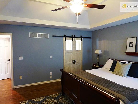Location is everything & this 1.5 story home is stunning, located on double cul-de-sac and less than a min. to nature trails along Deer Creek golf course. Blue Valley North school district & close to great shopping & amenities. Updated home w/ beautiful hardwoods in the master and master closet! The kitchen has stainless appliances, gas cooktop, & lots of cabinet space. You'll love the hearth room right off the kitchen. Spacious upstairs & all bedrooms have walk-in closets. Finished L.L. also has lots of storage