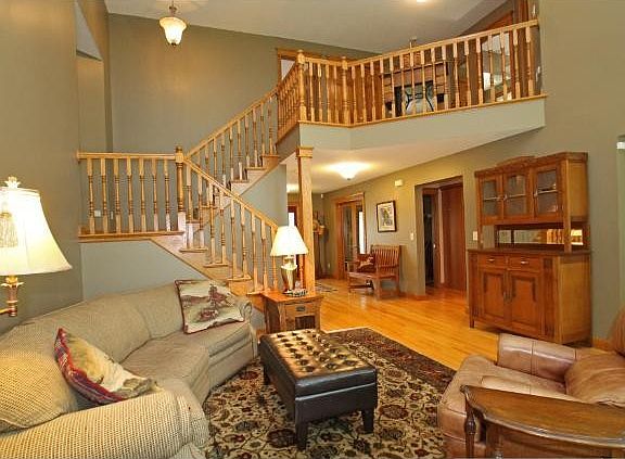 Inviting & Impressive modified two story with MANY upgrades incl: wood & tiled flrs, Andersen windows, oak trim and 6 panel doors, gas fireplace, central vac, open staircase, master suite, 3+ car garage, insulated & finished. Private 1.5 acre lot.