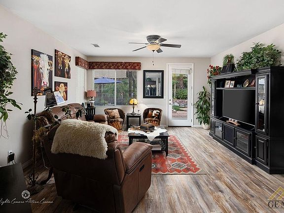 Outdoor entertaining at it's finest takes you from solitude to entertaining mecca. Stunning backyard with Pergola covered sitting area, separate dining area, firepit area and private spa retreat all surrounded by extensive flatwork and lush landscaping. Gorgeous home with newer wood look laminate flooring features open family room and kitchen with magnificent live edge wood island top that will knock your socks off. Spacious Master suite with slider to outdoor spa and double sink bath, split wing 2nd bedroom and bath, laundry room. Formal dining room with custom lighting and bonus/office with double door entry if you are needing some quiet time. Reverse osmosis water softener included. Four Seasons 55+ Active Adult Community with outstanding amenities including Lodge, Bistro, Ballroom, Library, Game Room, Theater, Fitness room, Salon, outdoor BBQs, bocci ball, pickle ball, tennis, resort style pool, jacuzzi and more!