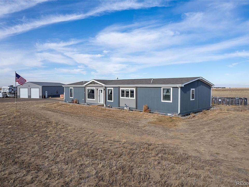 Motivated Seller!!! Price Reduced!!! This may be the Property that you are looking for! An outstanding ranch-style home on 5 acres w/ a 50x30 shop in desirable rural Weld County! No HOA!!! Beautiful views! Open floor plan designed w/ convenience & your lifestyle in mind! The comfortable living room features vinyl plank flooring. Dining area has plenty space to expand the table for large gatherings. The family room is a cozy spot to gather around. From here use the sliding glass door to access the back deck. The white kitchen is trendy & designed w/ functionality in mind. Stylish S/S appliances. Plenty of storage space thanks to the ample cabinetry. The center island is a great meal prep area. It's the perfect space for culinary creations and entertaining. The Laundry room/mud room is a great way to enter when coming in from working outside. 4 bedrooms on the main level. Full hall bath w/ two sinks & separate tub/toilet area. The primary suite includes a large bedroom with an en-suite 5-piece bath with double sinks, Shower, soaking tub & walk-in closet. A fully fenced backyard with wooden deck for outdoor entertaining. This back yard is a great place to set up a patio set, grill, firepit & more! Plenty of lawn space for pets to play. The 50x30 Shop/Garage has concrete floor, 220 elect, 3 overhead doors, and 2 walk-in doors. A shop of this size is a great place to work on your projects. There is also a 28x12 shed that has elect and heat, that can be used for many things. A Large front driveway offers plenty of parking. This 5 acres allows for animals and 4-h projects. Don't forget that there is plenty of space for RV parking. Access to the property is paved road most of the way (Approximately less than 1/4 mile of gravel road). Quick access to I-76 or Highway 52 for commuters. When mapping this property, use Google maps (not Apple).