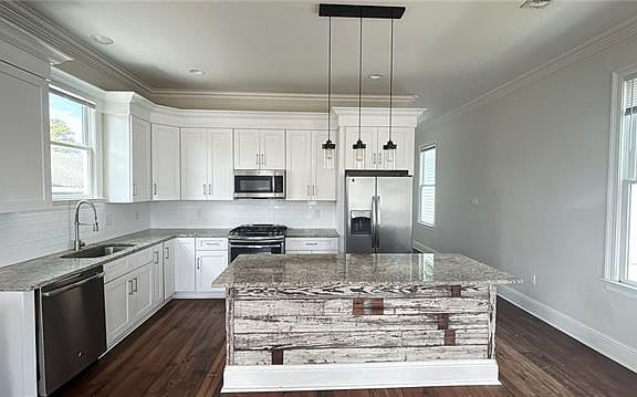 Built in the historic Holy Cross District, just steps from the Mississippi River levee. Enjoy incredible views of downtown New Orleans from the levee on your morning or evening jogs. This beautifully appointed home featuring an open floor plan with high ceilings and gleaming wood floors. The kitchen is outfitted with elegant countertops and stainless steel appliances. Washer and dryer provided. The spacious primary suite offers a walk-in closet and full bath and shower. Off street parking. Pets are on case by case basis.