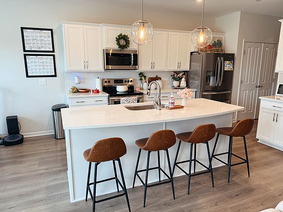 Beautiful 4 bed 3 bath home with backyard view open to green space! Short walk to neighborhood playground and splashpad. Triple-zoned for highly-sought after Stewarts Creek schools. Kitchen equipped with quartz countertops, white cabinets, butler's pantry, and included fridge. LVT flooring throughout main floor, coffered ceiling in family room, and huge bonus room upstairs. Primary suite (with his and her vanities and large his and her walk-in closets) and two bedrooms on main floor with large bedroom and full bath upstairs (perfect for guests). Sprinkler system installed in yard. Ring doorbell installed. Outlet installed in garage for EV charging. Great neighborhood community with holiday events and get-togethers. Renter is responsible for all utilities, water, trash, electricity, and lawn and landscape maintenance. Owner will change air filters quarterly. No Smoking. No pets please. Available July 15 (negotiable).