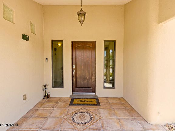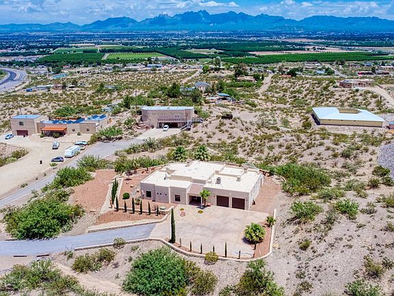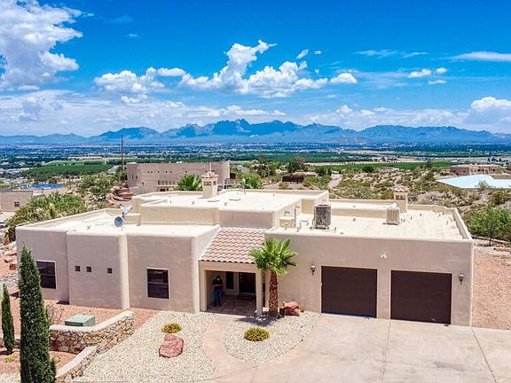 This stunning home is nestled on a hill in the highly sought-after Desert Mountain Subdivision, offering breathtaking views of the majestic Organ Mountains. Step inside and be greeted by a well-appointed kitchen that will delight any cooking enthusiast complete with ample cabinet space, luxurious granite countertops, stainless steel appliances, and a convenient breakfast bar. The dining area exudes elegance with large windows and exquisite wood pillars, creating the perfect ambiance for memorable meals with family and friends.The living area is a haven for relaxation, allowing you to unwind while taking in the picturesque views of the backyard oasis and the magnificent Organ Mountains. Sit back and enjoy your favorite beverage at the bar, equipped with a sink, wine, and beverage refrigerator. This home features 3 bedrooms, including an office, and 2.5 bathrooms. The Jack and Jill bedrooms are beautifully designed and share a tastefully tiled shower. Th