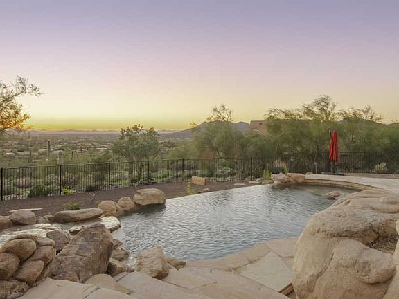 Price Reduction !! On this custom home perfectly placed on the highly desirable Black Mountain in Cave Creek. The home boasts magnificent city and mountain views from almost every room and patio to admire the beautiful Arizona sunsets. 5 bedroom, 5.5 bathroom plus amazing theater/bar room, wood finished library with soaring high ceilings, separate Casida with full bathroom that could be used as guest room,private office or awesome poolside game room! A spacious 5000sq ft with impressive winding staircase and high volume domed entry ceiling. Open kitchen with newer appliances. Amazing entertaining backyard with extraordinary views from all patios surrounding the negative edge pool with poolside bar and built in barbecue! Oh and the horseshoe pit the set near the pool for extra entertainment