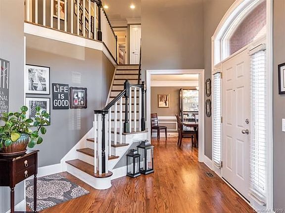 RARE GEM. Privacy awaits on a sprawling 1+ acre lot on a cul de sac. Exceptional full brick home w/ side entry garage and gleaming hardwoods throughout main. Gourmet kitchen w/ large granite breakfast bar and stainless appliances. Family room boasts soaring ceilings, gas fireplace and built-ins with lots of natural light. Crown molding throughout and generous storage. Partially-covered deck is perfect for entertaining w/ backyard fire pit and fenced yard. Conveniently located just 2 miles from retail and restaurants in Village Commons.