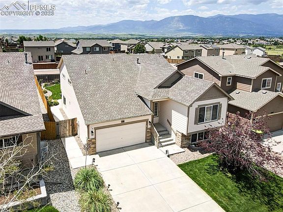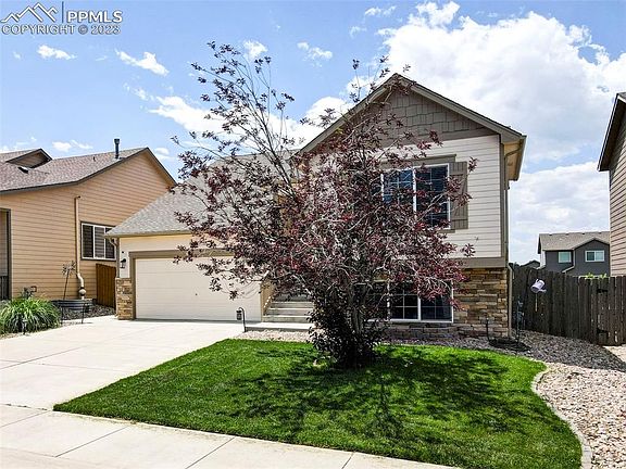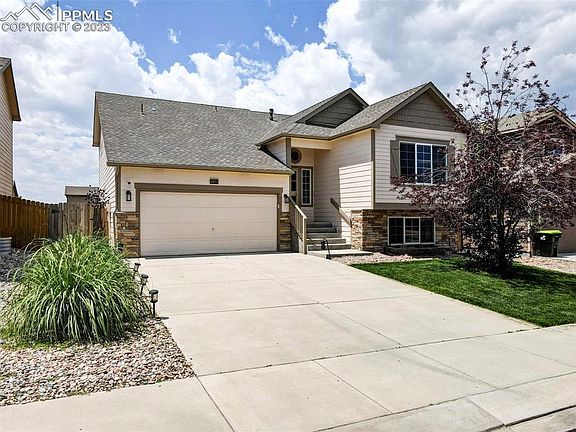 From the entrance, you're greeted in the split level home with high vaulted ceilings, large windows letting in plenty of natural light, and an open concept living space as you enter the living and dining room and kitchen. Next, make your way upstairs to enjoy the private owners bedroom, complete with a beautiful en suite and a large walk-in closet. Two additional bedrooms, as well as a full bath complete the upper level. The lower level includes a large family room with a walkout to the beautifully gardened backyard an oversized extended concrete patio with unobstructed mountain views, this floor includes a 1/2 bath, laundry room, and garage access. Finally, make your way downstairs to the unfinished basement, waiting for you to to make this space your own! With its proximity to Fort Carson, Peterson AFB, Schriever AFB, COS airport, and the Powers Corridor for you to enjoy shopping, restaurants, and a movie theater, this beaut won't last long! Schedule your showing today.