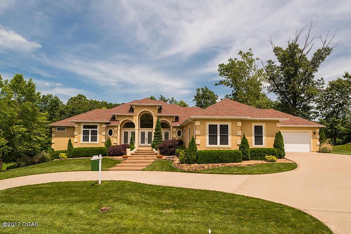 Gorgeous custom built home with full stucco exterior, circle drive and walkout basement. Huge covered Lanai w/ patio below and open kitchen + fantastic basement bar area in walkout basement featuring wired speakers inside and out making this home great for entertaining. Kitchen features large granite island, top of the line kitchen appliances, walk in pantry & breakfast area. 3 bedrooms on main level and 4 car attached garage. Sitting on nearly 3/4 acre lot with gentle slope. Lots of unfinished space/storage plus 2 more bedrooms in basement & storm room. Avg electric $170/mo Avg gas $70/mo