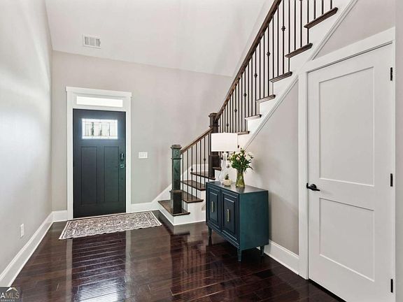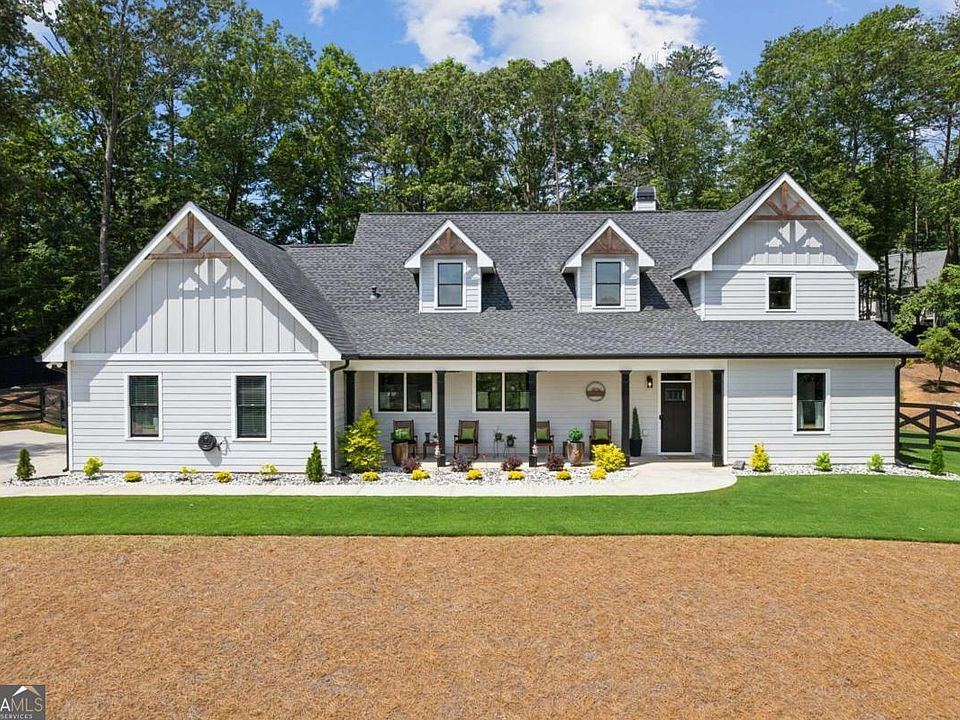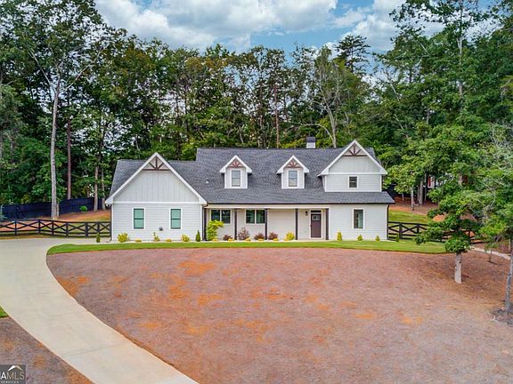 Built in 2022, this 5BR/3.5BA home sits on over an acre in Dockside Cove, a gated lakeside community designed for those who value peace, privacy, and convenience. From the rocking chair front porch to the level, private backyard, every detail invites you to slow down and enjoy the quiet or a day on the lake (current boat slip rental available!). The main level offers everything you need for easy day-to-day living, including a spacious primary suite with backyard views, and a spa-style bath. The open living area features warm hardwood floors, exposed beams, and a cozy wood-burning fireplace. The gourmet kitchen includes quartz countertops, KitchenAid appliances, and a custom walk-in pantry, making cooking and entertaining simple and enjoyable. A large laundry room with sink and cabinetry is thoughtfully placed for function and comfort. Upstairs, you'll find a second primary suite for visiting family or friends, along with two more bedrooms, a bonus room which could act as a 5th bedroom or game day space, and walk-in attic storage. The oversized 3-car garage provides extra space for hobbies, storage, or a workshop. The backyard is private and peaceful, with a covered patio, hot tub, and fire pit, plus room for a pool if you wish. Dockside Cove residents enjoy wide estate lots,a community day-use dock in deep water, and the quiet pace of lake living-canoeing, kayaking, and boating are right at your fingertips. Yet shopping, dining, healthcare, and Hwy 400 are less than 20 minutes away with Cumming, Dawsonville, and downtown Gainesville right at your fingertips. Current boat slip rental available! Ask about an assumable VA mortgage at 4.5%.