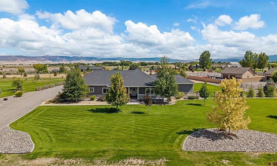Exquisite 4 Bedroom, 3 Bath Home on 2.02 Irrigated Acres in Spring Creek Meadows! Welcome to refined country living in one of Montrose’s most prestigious rural subdivisions. This 4-bedroom, 3-bath custom home sits on 2.02 irrigated acres and offers the perfect blend of elegance, comfort, and functionality. Step inside and be greeted by an inviting open floor plan featuring hand-textured walls, custom cabinetry, granite countertops, and stainless steel appliances. Large windows bathe the home in natural light, while the spacious great room with a gas fireplace creates a warm gathering space. The thoughtful split-bedroom layout includes a designated 4th bedroom/office, ideal for remote work or flexible use. The luxurious primary suite boasts a spa-like bath with an insulated soaker tub, tiled shower, dual sinks, and an oversized closet. Every detail has been carefully designed for both beauty and practicality—including a well-appointed laundry room with a utility sink and folding counter. Outdoors, the sellers have transformed the backyard into a private oasis—fully fenced, meticulously landscaped, and ready for relaxing evenings or entertaining guests. Irrigation water, included through the HOA, keeps the grounds lush and green. A spacious 3-car attached garage provides ample storage for vehicles, tools, or toys and there is still room on the east side to build a detached shop if that is what is desired. This home is the perfect balance of rural serenity and upscale living—turn-key, elegant, and move-in ready. Don’t miss your opportunity to own this exceptional property in sought-after Spring Creek Meadows.