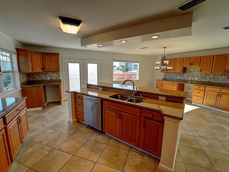 Only 1000 ft to public, white sandy beach access (12) on Thomas Dr!No worries in this fully renovated beach style home just a short walk or golf cart ride to the Gulf.Put this one on your must see list.Big 2nd story front deck with gulf view! Inside you'll find a beautifully remodeled spacious kitchen with breakfast bar and large dining area with GORGEOUS GRANITE, CUSTOM CABINETS and STAINLESS appliances. Two Master suites, 1 downstairs & 1 upstairs. The upstairs oversized master bath is stunning and features double vanities, whirlpool tub & separate tiled walk in shower. All 3 additional baths have been very nicely updated. Updated baseboards, trim and doors throughout give the home a new look. Large utility room, covered patio and storage building in privacy fenced back yard