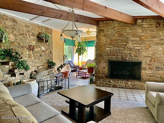 Surround yourself with natural beauty in this private, lakefront retreat! A unique, walkout ranch overlooking a lake surrounded by trees nicely positioned on 4 acres. Great room offers a natural stone fireplace and wall with a water feature (not currently in use), wood beams and stone floor. The wall of glass doors allows for stunning views of the woods and lake. A wonderful combination of natural materials in the construction of this home gives and open airy feel. A large deck allows easy access to outside from the great room/dining area. The kitchen features exposed wood beams, granite countertops, island, updated cabinets, views of the front garden and access to a glass enclosed 8x14 porch.There are three spacious bedrooms on the first floor along with a pristine mid-century bath A solarium area provides great view of the lake and natural light. The lower level offers an additional full bath with walk in shower, a family room, utility area, storage, as well as access to the carport/covered patio overlooking pool area. A large pole barn will park 4 vehicles and has access from the side drive. Photos do not do justice to the warmth and natural feel this home offers. The Seller had an above ground pool dropped in the in ground structure. The above ground structure was removed last year. Possibility of restoring concrete pool or installing an above ground or filling will be buyers responsibility.