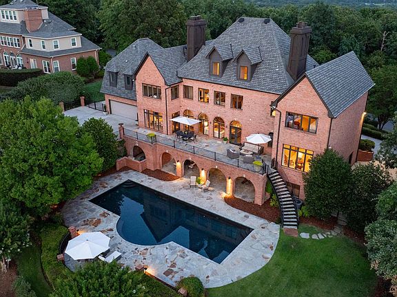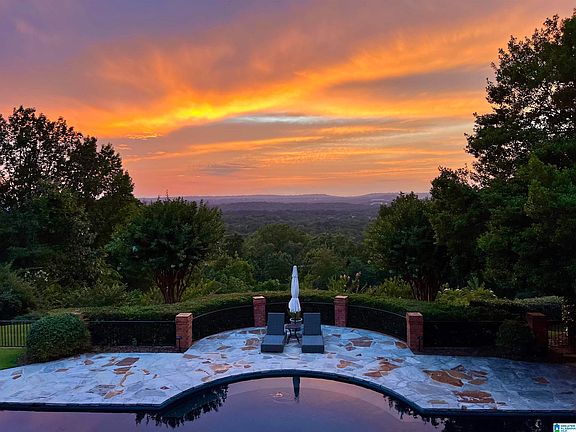Enjoy Birmingham's most Spectacular views w/ever-changing painted sunsets! Rare opportunity in this much desired neighborhood! Full brick 6 BR home in perfect condition w/finished basement, pool, covered porch & fire pit area, 2-car MAIN & BSMT garages. Open plan w/spacious light filled rooms, 4 fireplaces, high ceilings & hardwood flws! Impressive 2 story foyer, w/formal living & dining rms, large greatroom w/wall of windows to enjoy the picturesque views, fabulous updated eat-in kitchen w/granite counter tops/island, gas cooktop, double oven, tons of cabinets! Oversize master suite w/sitting area, 2 walk-in closets & luxury bath! Upstairs features 4 spacious bedrooms 4 baths, library, wet bar & rec/playroom. There is even a play bonus room on the 3rd level. Bsmt has BR, bath, exercise rm, 2nd kitchen, sauna, large entertainment room w/windows that looks out to covered patio & pool area. Endless outdoor living possibilities with gorgeous gunite pool, firepit & additional garden area.