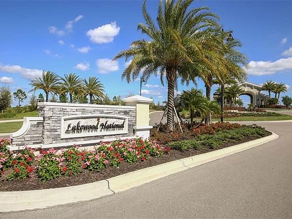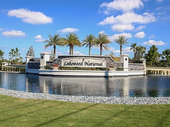This gorgeous like new lakefront 3/2 home is priced to sell and ready for you to move in! It's located on a premium lot (lake and preserve) in the gated community of Lakewood National. This community is surrounded by an expansive Arnold Palmer designed 36 hole golf course. As you drive through the guarded gate, you will be immersed in the resort style here. In addition to the golf membership, owners will enjoy resort style community pool, poolside cafe, tennis courts, fitness center, full service spa and fully maintained lawns. When you walk into this stunning house, you will immediately be drawn to the view of the lake and preserve and all the natural light that comes through the giant triple glass sliders. Take a look at that gorgeous summer kitchen! Can you picture yourself cooking out on your screened lanai all year round? The huge master suite features direct access to the lanai and the en-suite bathroom includes a large walk-in shower, a garden tub and dual sinks. The spacious Kitchen features granite countertop with a huge island, decorative 42" Cabinets with Crown, Under-mount Lighting, Gas Burner Cooktop, and stainless steel Appliances. The main area of the home features contemporary diagonal laid Porcelain tile. This home has all the features you want. Schedule a showing today and you will be glad you did. No more freezing temperature and no more snow. Move right in and start living the relaxing Florida lifestyle!