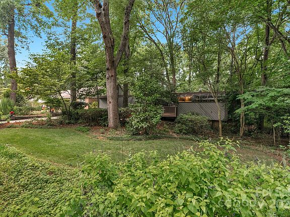 A rare opportunity to own a mid-cent modern gem. Influenced by Frank Lloyd Wright aesthetics, this house is nestled on a wooded lot w/Master Gardener designed mature landscaping in the Charlotte Southpark area.This iconic home was featured on the 2021 Charlotte History Museum “Mad About Modern" tour (in attachments). Built in 1964, it has been lovingly & continuously expanded, remodeled & reimagined by its architect & artist owners. Architectural details abound in every room. The open plan living-dining area boasts exposed beams, hardwood floors, sky lights, a gas fireplace & built-in display cabinets.The architect-designed kitchen includes black granite countertops & a breakfast nook.The primary bedroom features curved glass windows & an ensuite bath w/whirlpool tub.The downstairs bonus/bedroom has brick flooring, a full bathroom & own separate entrance. Decks on the front & back provide entertainment or quiet space. One year old hvac/furnace system & new roof Non. 23. No HOA.