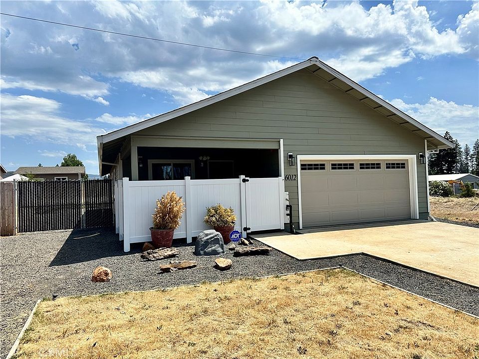 From the moment you walk into the private front porch, you will be impressed with this lovely home. Step inside to the spacious family room which is adjacent to the kitchen with granite countertops, a butcher block island with a skylight above for some natural lighting, stainless steel appliances, a farmhouse sink, and a walk-in pantry. The dining area and laundry room are nearby too. As you walk down the hallway you are first greeted by the den, then the 2 bedrooms are towards the back of the home. The primary bedroom is spacious with a walk-in closet and a nicely appointed bathroom with a walk-in shower. All rooms have ceiling fans, with either Berber carpet or custom-stamped concrete floor. For those who love the outdoor life, there is a good-sized fenced backyard with RV potential and a fully finished 2-car garage. THE SELLER IS PROVIDING A CREDIT OF UP TO $3,000 TOWARDS THE BUYER'S FIRST YEAR OF HOMEOWNERS INSURANCE. Call your favorite Realtor today to schedule a showing.