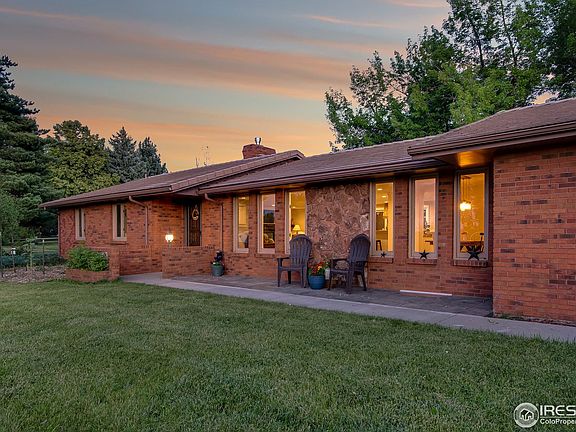 Colorado living where you can relax, unwind and enjoy the sunset! This custom all-brick ranch home is on 2.3 acres with mature landscaping & irrigation & is nestled near the foothills. This home has updates throughout, including: Eat-in kitchen, granite counter tops, gas range w/double oven, farm sink & pantry. A nice sized family room w/gas FP and separate dining space make this home perfect for entertaining. 2 car attached/2 car detached garage gives you plenty of room for your toys & RV parking. Unfinished basement gives you room to expand. Come enjoy the country living! Water Rights for irrigation are owned by HOA. Playset included. Showings start 7/10/20