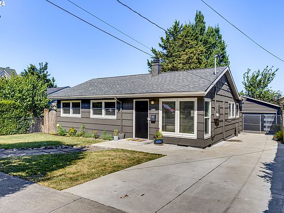 This charming cottage sits in the heart of Johns Landing - safe, quiet and close to parks and the riverfront. Cozy and inviting, this starter home delights with a blend of modern updates and classic charm. The newer concrete driveway and front walkway create a fresh and welcoming entrance. Inside, you'll find a spacious living room and eating area off the kitchen, perfect for family meals or casual dining. The bathroom has been tastefully updated with modern fixtures and finishes, while the fresh interior paint and new refrigerator make moving in a breeze. A separate mud/laundry room leads to an expansive backyard. The oversized, fenced yard is ideal for entertaining, complete with a patio, partially finished detached 2-car garage and a concrete pad ready for a hot tub! Adventurers and travelers - you'll love the convenient RV parking. Close proximity to the Willamette River and Park, JoLa Cafe, McMenamins Fulton Pub, St. Honoré Boulangerie and a zippy drive to Zupan's, George Himes Trail, Sellwood, Hillsdale, Downtown Portland and much more! This adorable home is ready for you to make it your own. Don't sleep on this lovely starter home in an incredibly desirable Portland neighborhood! [Home Energy Score = 8. HES Report at https://rpt.greenbuildingregistry.com/hes/OR10115445]