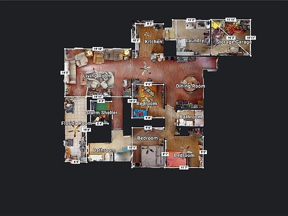 Charming home offers 3 beds and 2 baths with a 1/2 garage and converted utility room. Updated Kitchen with Granite counters with breakfast bar, built-in oven, range, dedicated pantry closet, larging dining area. Large living room with lots of natural light, and vinyl plank flooring throughout most of the home. When the home was added on to by the previous owner they included a concrete cinder block storm shelter with electric and a fan. The Florida room off the living room leads to the backyard with plenty of shade and space Covered carport, large pecan tree in the front yard at the street.