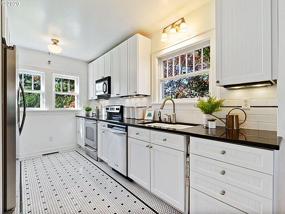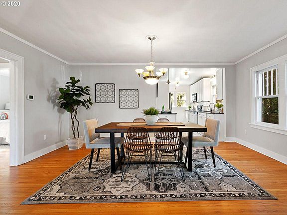 Just a hop and skip from the action, this house is a quiet oasis. The expansive dining room can seat all of your family and friends and the remodeled kitchen is a joy to cook in. Refinished hardwoods and fresh paint throughout. The detached garage has 220V power for use as a shop and Tesla solar panels for green energy. The garden is ready for planting summer vegetables and rain barrels are already in place. For social distancing fun, there is a regulation length horseshoe pit in the backyard! [Home Energy Score = 6. HES Report at https://rpt.greenbuildingregistry.com/hes/OR10183449]