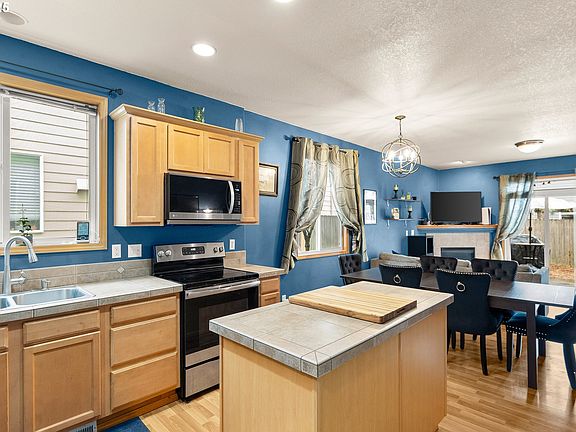 OPEN HOUSE 3/29/25 2PM to 4PM. Back on the market due to Buyers financing not the property. Lives larger than it looks. Photos don't do this gem justice. Open concept floor plan with stylish interior, highlighted by a chic paint palette, newer skylights, updated light fixtures, laminate flooring on main level, and tile countertops making this 3 bedroom two full and one half bath home ideal for gathering with family and friends. Spacious living & dining features high ceilings, cozy gas fireplace, and slider to fenced backyard with covered patio, perfect for outdoor entertaining, BBQing year-round or enjoying the white cherry blossoms on a warm summer evening with plenty of room for furry family members. The house chef will be thrilled with the usable island and newer, black and stainless appliances including refrigerator, range, built-in microwave and dishwasher while enjoying the festivities with the open to dining and living floor plan.Spacious bedrooms all on one level including the vaulted primary suite with double closets, and ceiling fan.The forced air HVAC system includes air conditioning plus ceiling fans in all bedrooms ensuring comfort year-round. New water heater. Easy care landscaping with both floral and fragrant landscaping.Located in the charming Brentwood Darlington Neighborhood, this home offers a warm residential feel with easy access to downtown Portland and minutes to vibrant Sellwood & Woodstock shops and eateries. Nature enthusiasts will love the proximity to numerous parks, including Brentwood Park and Community Garden(just a few blocks away), Hazeltine Park & Mount Tabor. Bike to Springwater Food carts, Woodstock library or to downtown through the Oaks Bottom Willife Preserve. Convenient to locally owned convenience store & schools & blocks to community center with pool, gym, both after school & summer activities for everyone. A Must See home in a community oriented neighborhood! [Home Energy Score = 6. HES Report at https://rpt.greenbuildingregistry.com/hes/OR10235623]