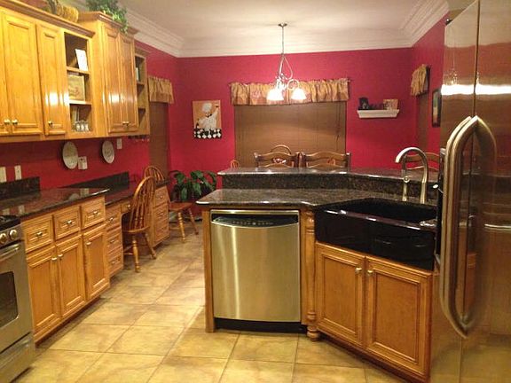 Custom built home with tons of extras! All wood custom cabinets with pull out drawers, granite tops, hardwood floors, stained concrete, stainless steel appliances, double crown molding in main area, trey ceilings in master and living, ceiling fans throughout, 2 faux blinds, oversized laundry room with room for 2nd frig, surround sound hook up in living room plus 2 car garage w/room for golf cart.