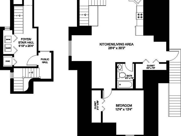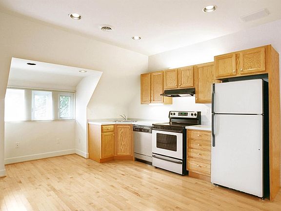 Third-floor loft-style apartment located in a renovated Victorian house. 2005 renovations include new maple hardwood floors; Berber wool carpeted bedroom; modern kitchen with refrigerator, range, dishwasher and built-in microwave; and a full size washer and dryer. Resident is responsible for gas, electric, water, and sewage.