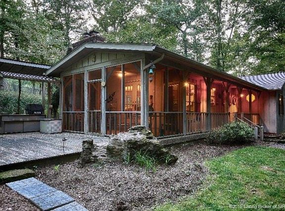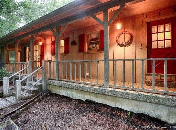 One of a kind home located in HEART of FLOYDS KNOBS right next to Floyd Central Schools sitting on almost 3 ACRES of wooded & open space. Rarely does something like this come along in this location. This was a custom designed/built home way ahead of its time featuring an open floor plan concept, vaulted ceilings, exposed beams, breakfast bar in kitchen, formal dining room & OVERSIZED PICTURE WINDOWS with amazing views of this gorgeous wooded lot. The comfortable family room offers a beautiful red brick wood burning FIREPLACE mantle area ready for your personal touch. 3 bedrooms 2.5 baths and a large formal living rm used as an office can be converted to a 4th bdrm. Update bathrooms & basement plumbed for additional bath. Unique custom finished basement complete with vintage Barn Wood, CUSTOM Built Bar, Living Room & Additional room used for a pool room or additional living space. Oversized 35x25 Garage has plenty of parking & work space