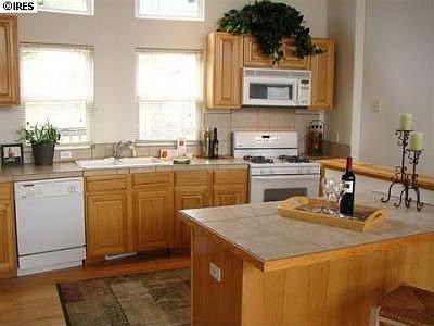 Enjoy views of Horsetooth Reservoir and city lights from the deck of this adorable foothills home. Vaulted ceilings! Warm wood floor accent the main level and master bedroom suite. Walkout basement is finished with large family room, bedroom/study and full bath. Main floor laundry. Nice sized kitchen with all appliances including washer and dryer. 2 car detached garage.