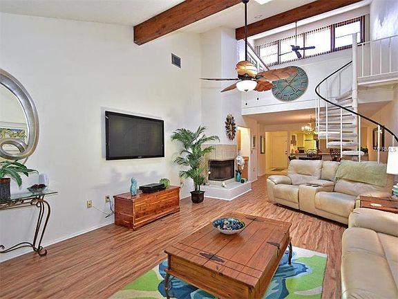 WOW!!! ***NEW PRICE REDUCTION($5,900) ON 08/18/2019***$1,500 SELLER CREDIT TO BUYER AT CLOSING WITH AGREED UPON CONTRACT PRICE*** BRAND NEW STAINLESS STEEL KITCHEN APPLIANCES***. Rarely available villa in desirable Racquet Club Villas. Bright and spacious 3/2 villa featuring open floor plan with high/vaulted ceilings, fireplace, spiral staircase leading you to large open loft space ideal for office, TV room, playroom or additional bedroom. Beautifully updated large kitchen with a plethora of cabinet space and a breakfast nook. Other recent updates include new refrigerator, newer flooring, updated bathrooms, new granite counter and wine cooler replaced for the wet bar and a brand new AC installed in 2017. Vast, gated courtyard with new landscaping ideal for relaxing, gardening and your four-legged friend. You will also be amazed by the sizable covered, screened lanai that provides ideal space for entertaining your friends and family, and an oversized 2 car garage with attic space for extra storage. Conveniently located just walking distance to IMG Golf and Country Club, United Tennis Academy, short drive to world renowned IMG Sports Academy, serene Gulf Beaches, shopping, restaurants, and so much more.