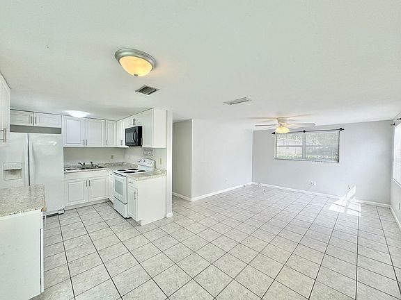 Renovated 3-bedroom, 2-bathroom home in Eagle Lake featuring all ceramic tile and vinyl plank flooring throughout. The open living/dining combo seamlessly connects to the kitchen. The primary bedroom offers boasts private en-suite featuring a walk-in tile shower and dual closets, including a generous 7x7 walk-in. A notably spacious back bedroom, measuring 11x14, provides private exterior access. Additional highlights include an inside utility room, a large storage shed in the backyard, and an open concrete pad. Enjoy the benefit of well water, eliminating a water bill.