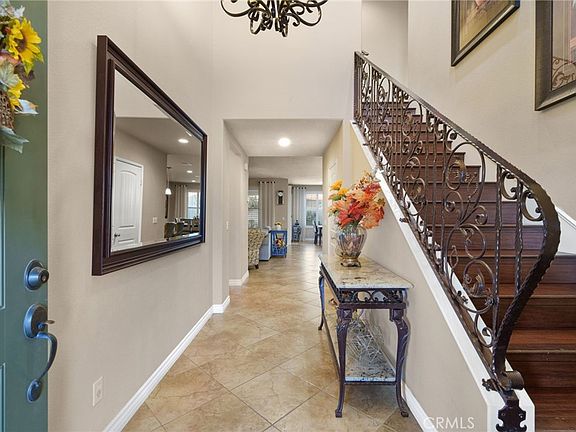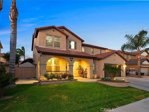 Welcome to this stunning turnkey home in Eastvale, boasting nearly 3,000 square feet of luxurious living space. With five bedrooms and four full bathrooms, including a first-floor bedroom and bathroom for the convenience of overnight guests, this home offers the perfect blend of space and functionality. Upon entry you are greeted by the custom wrought iron staircase matching the custom chandelier and table in the entry. There is also an office space on the main floor with a double built-in desk. The open floor plan creates an inviting atmosphere, making entertaining a breeze. The chef's dream kitchen features elegant granite countertops, top-of-the-line stainless steel appliances, and an abundance of upgraded cabinets, including two spacious walk-in pantries for all your storage needs. The first floor is adorned with beautiful tile flooring, providing a seamless and low-maintenance living experience. Upstairs, you'll find the spacious master bedroom with an en suite that includes a deep soaking tub, dual sinks, and a generous walk-in closet. An open loft area offers versatility as a game room or additional family space. Step outside to the meticulously landscaped backyard, complete with a covered patio equipped with a ceiling fan and a double built-in barbecue, perfect for outdoor gatherings. The landscaping is designed for easy maintenance, allowing you to enjoy the outdoor space effortlessly. Potential RV access and NO HOA! Conveniently located just minutes away from shopping and dining areas, this property offers both elegance and practicality. Don't miss the opportunity to make this house your home!