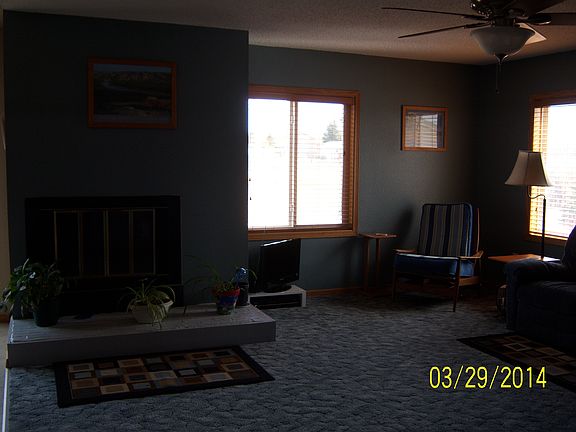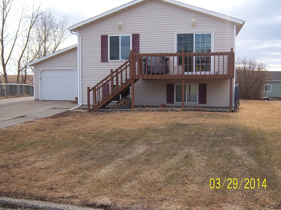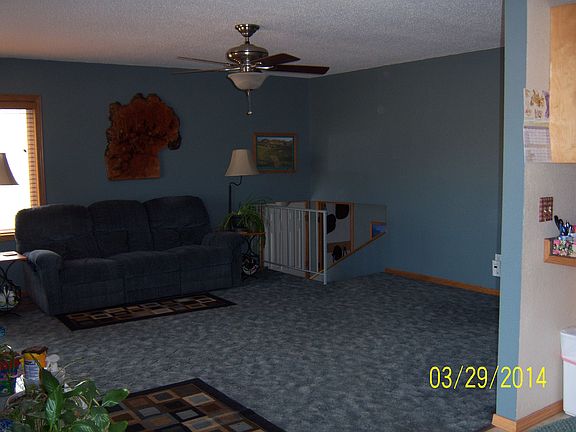 Split entry home. There are 2 bedrooms and 1 full bath up. There are also 2 bedroom and a 3/4 bath down . New high efficiency furnace and A/C put in 2013. Wood burning stove downstairs it was put in in 2009. A wood burning fireplace on main floor. A single attached garage. Also a 2 stall (26x 30) detached garage that was built in 2009. It has a wood shed. There is a garden area in back yard. Huge back yard. New Elementary School 1 mile away opening this fall. Across the street is a park with a Tennis/Basketball court and playground. Kitchen was updated in 2008. Carpets were updated in 2010