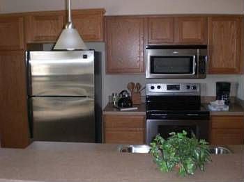 2 bedrooms w/ full bathroom and walk in closet. Laundry on 2nd floor. Open plan with kitchen island/breakfast bar, opens to dining/living room.