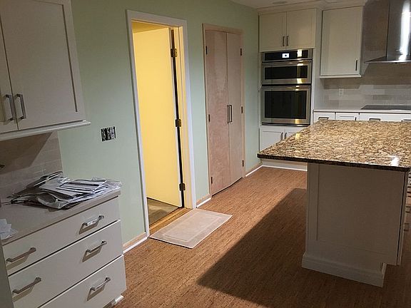 Soft contemporary in excellent condition, hardwood throughout first floor except bedrooms). Remodeled bathrooms with tile flooring and spectacular new kitchen with cork flooring, desk planner, island, access to screened porch and deck, Great room w/ vaulted ceiling and fireplace. Den or bedroom with built-ins. Master w/ spacious closets & deep soaking tub. Massive walk in Attic could be easily finished. Extra high ceilings in basement create a great workshop.