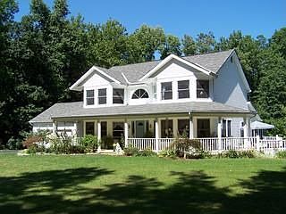 Wind back your driveway to this Everyday Getaway in a secluded, 5.47 acre wooded lot setting! Wrap-around covered porch, huge front yard with gazebo and rear yard to enjoy the scenic nature views! Bonus 20' x 40' in-ground pool with concrete surround, diving board, gas heater and filter system for outdoor entertaining. Step inside the impressive two-story foyer with ceramic tile and winding staircase which leads to spacious rooms throughout this gracious home. Huge dining room with crown molding and bay-window plus a sitting room off the foyer. The oak country kitchen with 42" cabinets, island and breakfast bar opens to the great room featuring a cathedral ceiling, plant ledge, bay window and brick wood-burning fireplace. Hardwood floors in the kitchen, dining and great rooms. White woodwork and 2-panel doors. Three season sunroom off the great room to relax in! First floor den/office can also be a fourth bedroom. Inviting master suite with a curved wall, sitting area, whirlpool, shower, dual sinks and walk-in closet/dressing area. Full poured wall basement with a sauna, full bath and finished rec room which can also be a fifth bedroom plus plenty of storage space. Central vacuum. First floor laundry with desk, washtub and cabinetry. Oversize 2-car garage with extra storage plus overhead storage area. Woods views from every room! Drastic price reduction!!