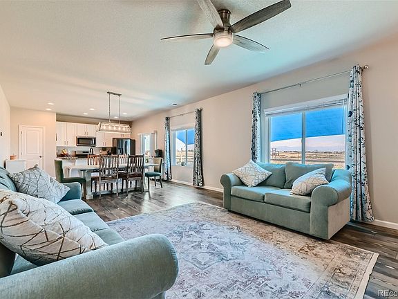 Welcome to Wyndham Hill! This lovely home sits on the West Rim of the community that affords it UNOBSTRUCTED PANORAMIC VIEWS!! Built in 2019, this popular model at 2449 square feet was designed with plenty of windows along the kitchen and great room area to enjoy those views all day long. At the front of this home you will find an Office, Full Bath and Fourth Bedroom. A perfect private spot for visitors! The Hallway leads to the Great Room and Kitchen that are enhanced by Luxury Vinyl Flooring throughout. Walk out your kitchen to an EXTENDED Patio complemented by built in SunShades! The Front Range is at your doorstep to enjoy. The owners also added concrete walkways on both sides of the house. The Upper Level Primary Bedroom also has those captivating views. Primary Bath has a large shower that boasts EXTENDED TILE to the ceiling. This enhanced tile feature is also found in the additional bathrooms. Two additional bedrooms and full bath are on this level, ALONG WITH your LAUNDRY ROOM and LARGE LOFT. Washer and Dryer STAY! NEW ROOF in 2023! Ceiling Garage Rack is included! Wyndham Hill is a short hop to I25 and so close to hiking/biking trails and the Neighborhood Community Center featuring outdoor pool and multiple playgrounds. Pictures will be uploaded next week.