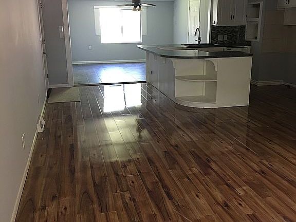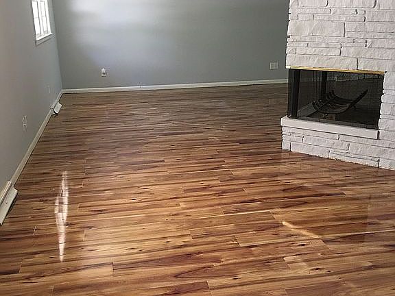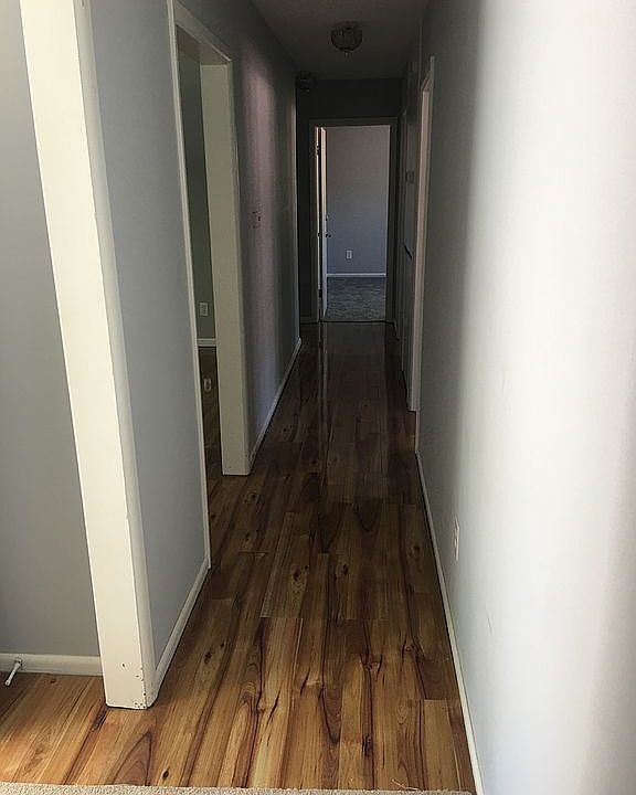 New paint throughout plus all ceilings and wood trim new paint . New shiny hickory wood laminate . New carpet in all bedrooms. Dishwasher. Two car garage attached. Near transportation bus. Two baths. Tile in family room. Windows have storm windows. Friendly neighborhood and dead end street. Has fenced back yard and beautiful large tree in front yard No utilities paid . Tenant mows and takes care of lawn . Tenant pays for trash service.