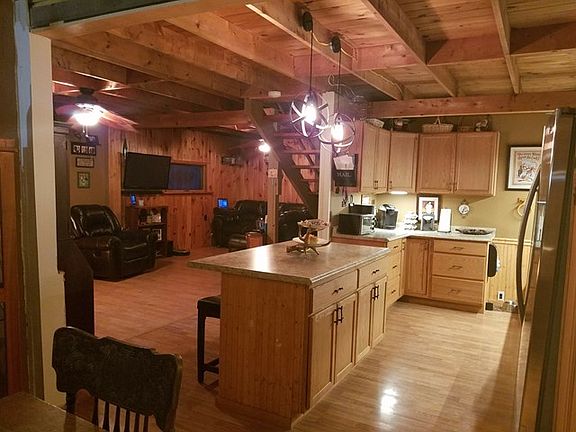 Private home located on over 6 acres deck, covered screened porch & fenced yard, horse barn & pasture. Features beautiful forest views frequented by deer, turkey, & other wildlife. Interior has master suite w/ walk in closet & bathroom. Home also has second living area, great for a man cave or recreational room. Decorative, functional woodstove in finished, walk out basement heats the whole home w/ ease. Outside of basement is a covered area great for storing firewood. Home has a pellet stove > 2 years old. Roof is being replaced w/ new metal. Owner is related to listing agent.