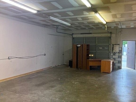 Commercial space available. Tall ceiling with a large garage bay ad separate pedestrian entrance. Includes separate private office space and restroom. $1700/month in rent plus a $150 monthly CAM fee. Includes water service. Inquire today to schedule a tour.